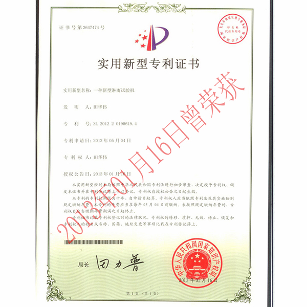 [下一篇: IP等级沙尘试验箱专利证书]