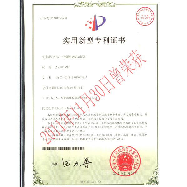 [下一篇: 恒温恒湿设备-专利证书]