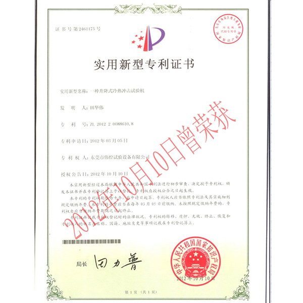 [下一篇: 一种新型冷热冲击试验机-专利证书]