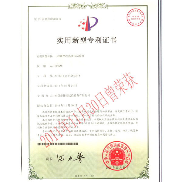 [下一篇: IP等级淋雨试验箱专利证书]